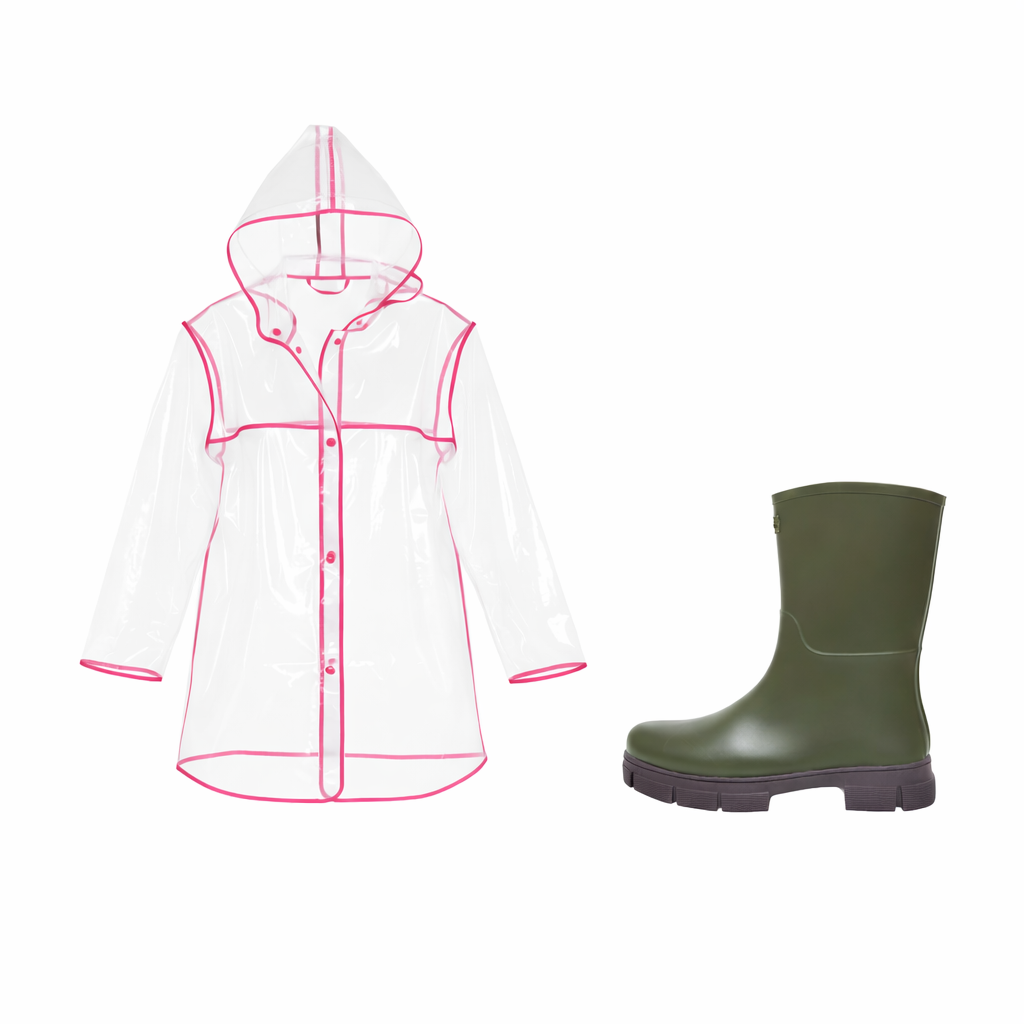 Ao comprar nossa galocha feminina campeã de vendas, você GANHA uma capa de chuva transparente, funcional e moderna. É a combinação ideal para quem quer proteção completa nos dias chuvosos, com conforto, praticidade e excelente custo-benefício — dos pés à cabeça.