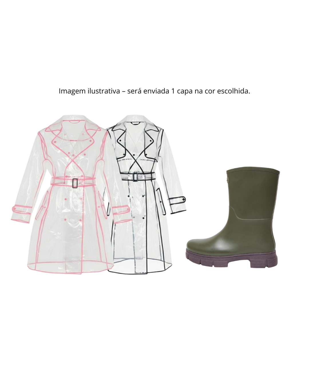 👉 Você paga pela galocha e recebe como brinde 50% de desconto na capa de chuva.