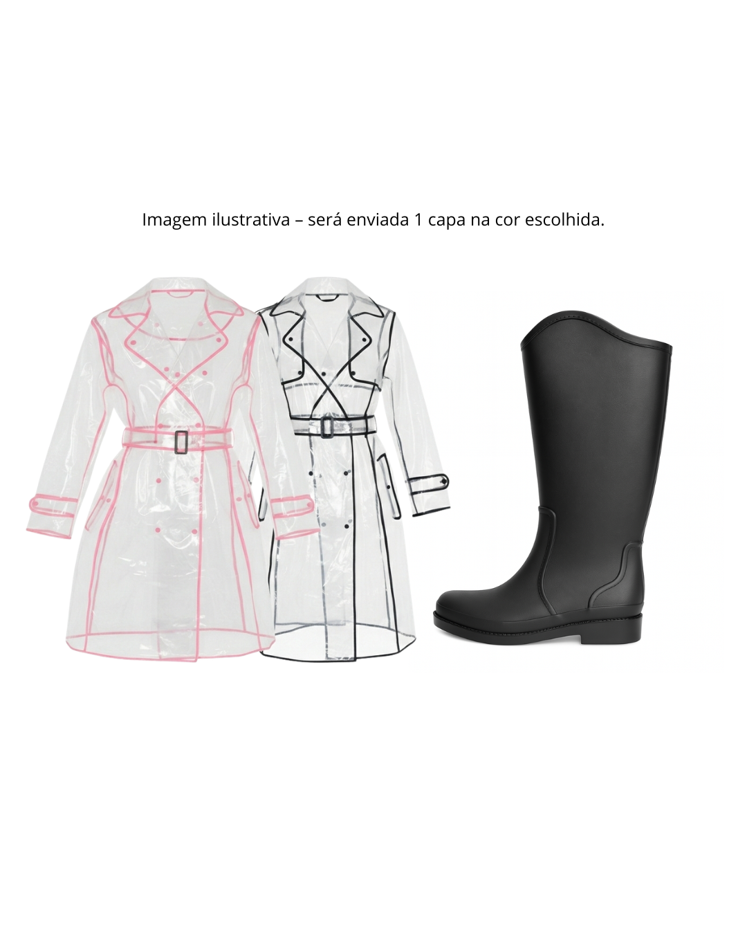 Ao comprar nossa galocha feminina campeã de vendas, você GANHA 50% de desconto em uma capa de chuva transparente, funcional e moderna. É a combinação ideal para quem quer proteção completa nos dias chuvosos, com conforto, praticidade e excelente custo-benefício — dos pés à cabeça.